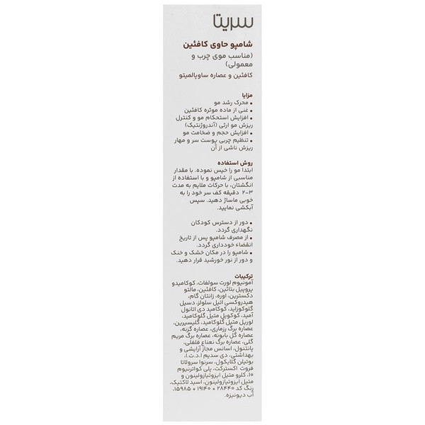 شامپو کافئین سریتا با فرمولاسیون تخصصی و غنی از کافئین فعال، به تقویت ریشه مو و کاهش ریزش مو کمک میکند. این شامپو با افزایش گردش خون موضعی در پوست سر، فولیکولهای مو را تحریک کرده و باعث افزایش استحکام و ضخامت تارهای مو میشود.